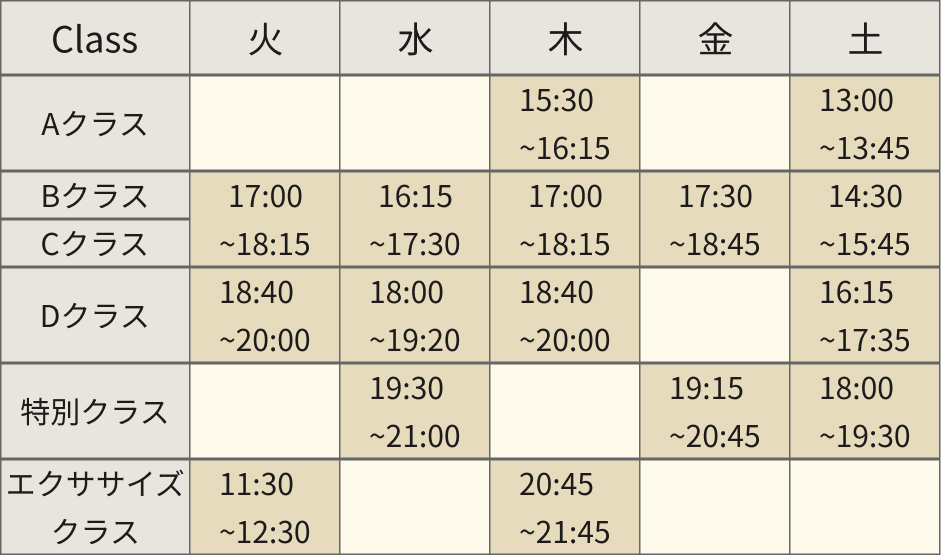 *クラス割りは講師の判断により決めさせていただきます。